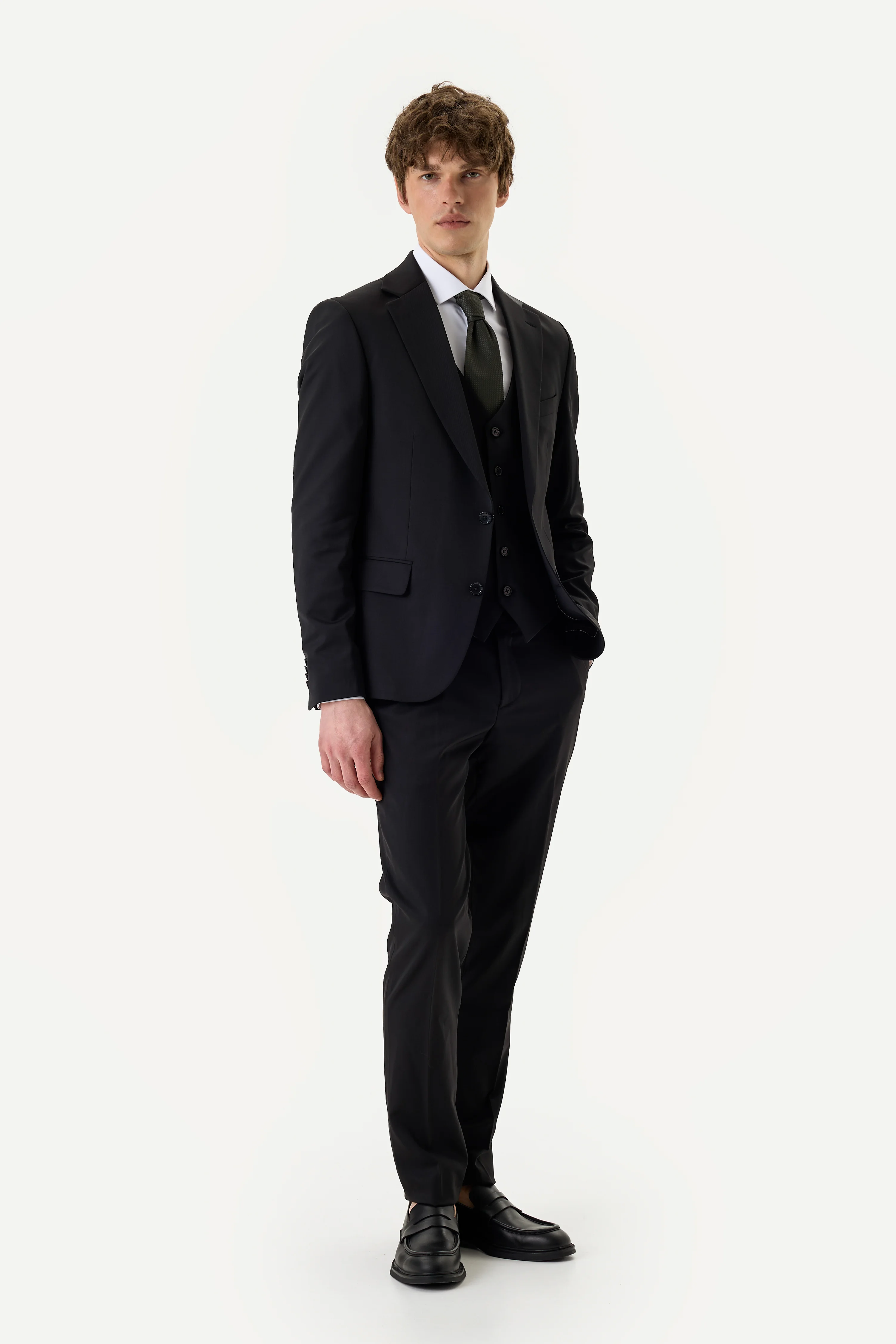 Костюм-трійка зі 100% шерсті чорного кольору
