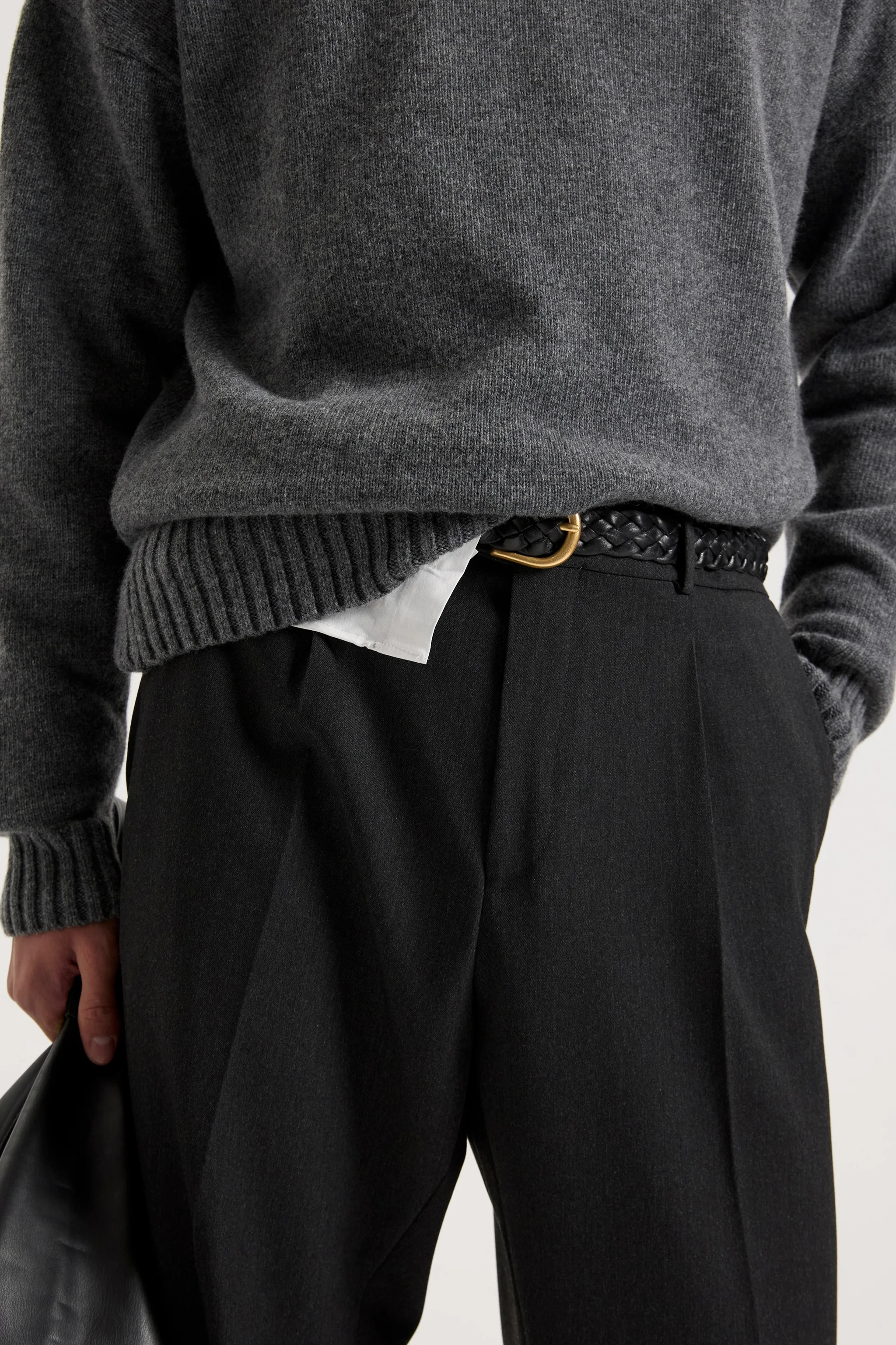 Штани вільного крою на основі вовни із защипами сірі