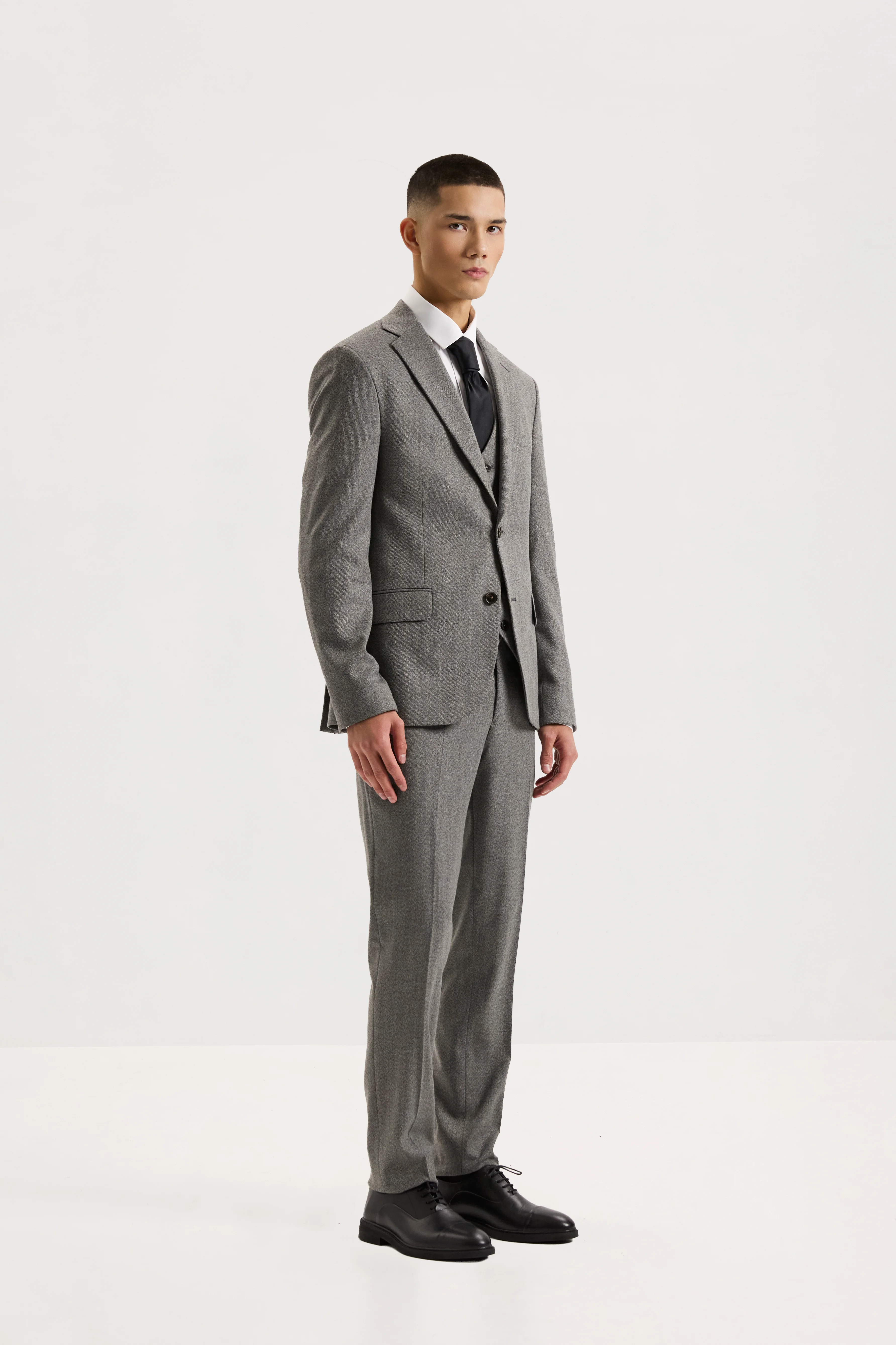 Чоловічий костюм-трійка з вовною сірий в смужку