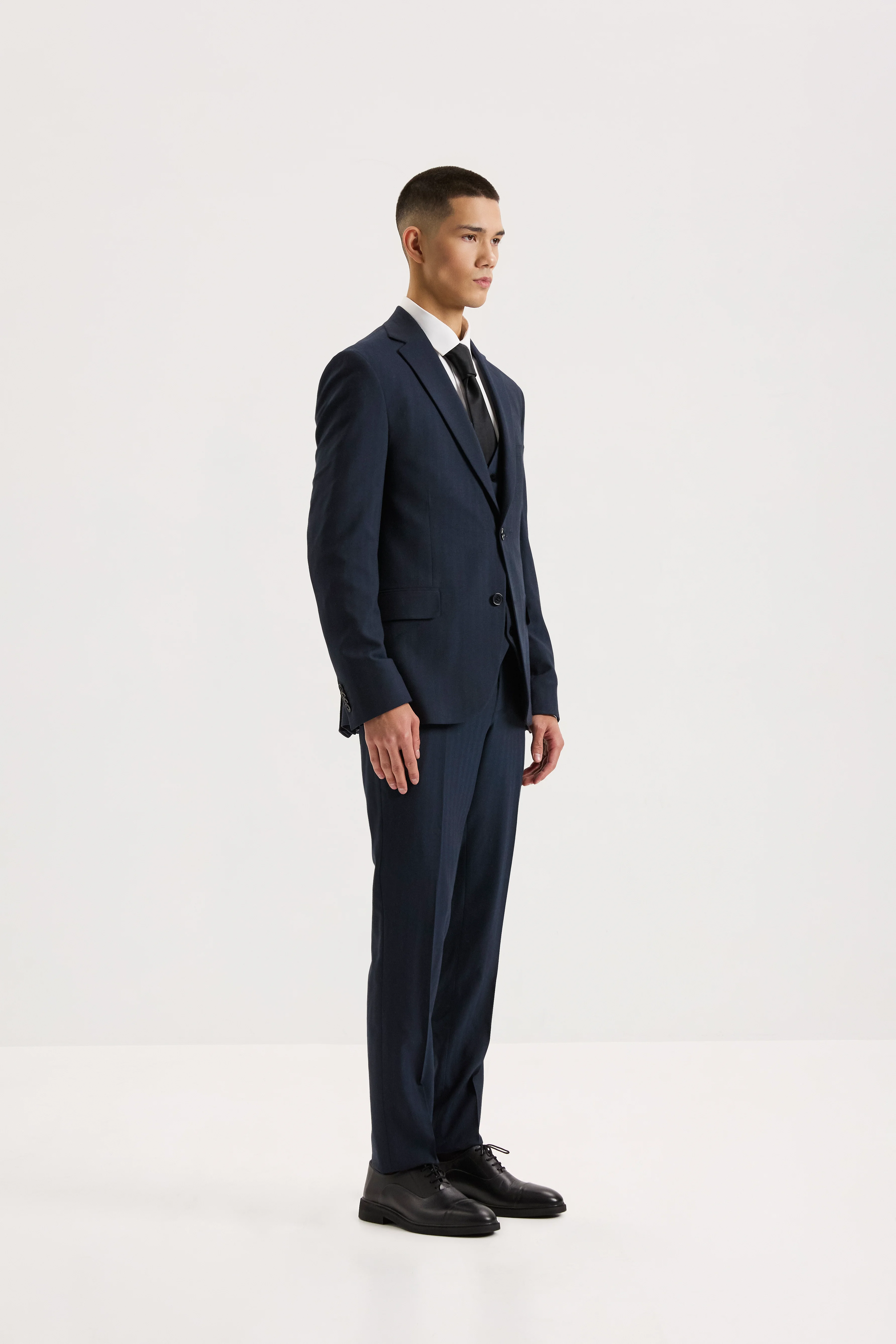 Чоловічий костюм-трійка з вовною синій з вкрапленнями