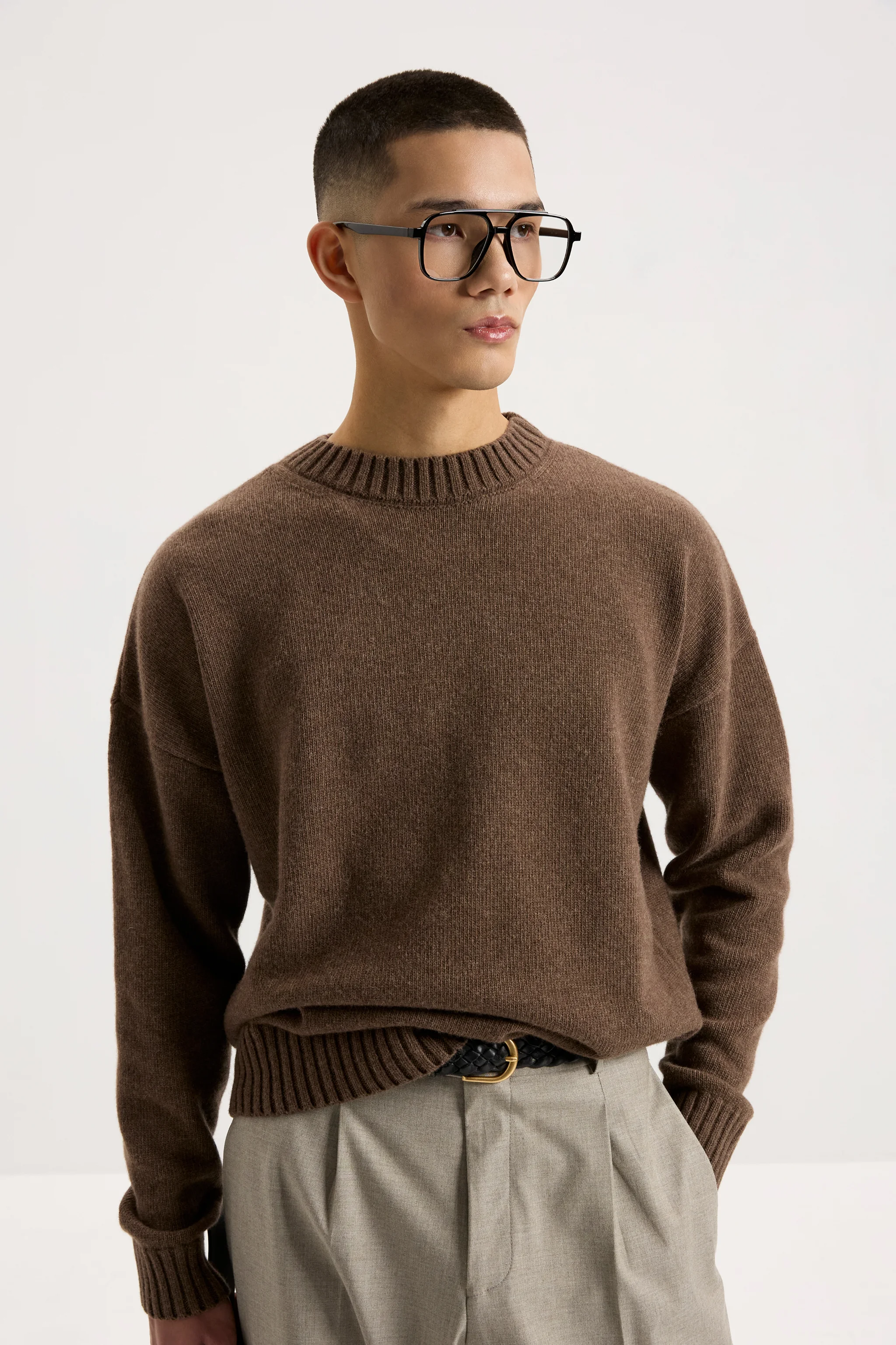 Серед светрів немає більш універсальних, ніж класичний джемпер з круглим вирізом. Цей джемпер оверсайзного крою зі спущеними плечима та вільними рукавами. Він створений із тактильно м'якої вовни та перероблених волокон, які зігріють вас у холодну пору